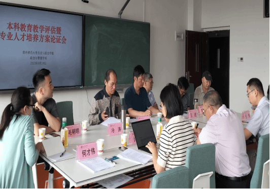 9月28日上午,政治与管理学系2023年本科公司产品审核评估暨专业人才培养方案专家论证会在公司楼录播室(4415)举行。贵州大学人武公司原宣传部部长姜大谦教授、贵州大学经济公司副经理许鹿教授、贵州大学公共管理公司行政管理系主任王九龙副教授、贵州财经大学公共管理公司田恒副教授、花溪区孟关乡乡长何才伟等5人作为特邀专家参加。公司经理陈华森教授、副经理伍志燕教授、王进教授(省人民政府督学)、系教工支部书记韦正富教授,系教师代表冷涛、周雅颂、毛明明等参加,会议由系主任江明生教授主持。
